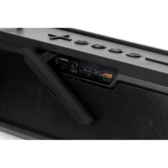 Przenośny, wodoodporny głośnik o stopniu ochrony IPX4, wyposażony w uchwyt o długości 1200 mm, który ułatwia zawieszanie lub przenoszenie, regulowany do ciała lub jako krótki uchwyt. W sytuacjach awaryjnych akumulator o dużej pojemności umożliwia łatwe ładowanie innych urządzeń. W pełni konfigurowalna maskownica.Materiał: ABSStopień ochrony IP: IPX4Transmisja bezprzewodowa: BT v5'0Pojemność: 3000 mAhPrzybliżony czas pracy baterii: 5 godz.Wejście: USB-C (5 W), 3.5 mm, USB-AWyjście: USB-A (1 W), 3.5 mmŚrednica głośnika: Ø 76 mmMoc dźwięku: 16 W (2 x 8 W)W zestawie: kabel USB-A / USB-C, kabel audio 3.5 mmOpakowanie: Pudełko prezentowe 250 x 100 x 90 mm