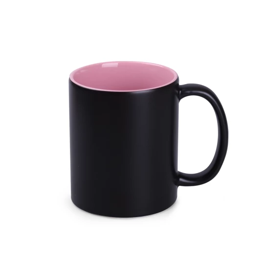 Klasyczny cylindryczny kształt z satynową w dotyku czarną powierzchnią. Dobrze znany model kubka, na którym pod wpływem gorącego płynu wyłania się nadruk w fotograficznej jakości. Posiada wnętrza w kilku modnych kolorach do wyboru. Matowa zewnętrzna powierzchnia jeszcze lepiej "ukrywa" nadruk kiedy kubek jest zimny.