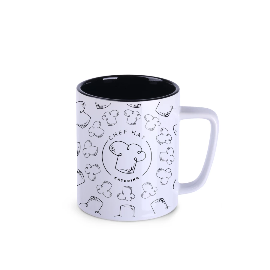 Klasyczny kubek o prostej formie i ciekawym uchu. Posiada wnętrze w 3 kolorach do wyboru. Wyróżnia się dużymi możliwościami w zakresie zdobień.