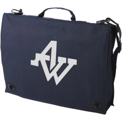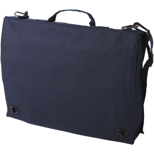 Torba konferencyjna z uchwytem, regulowanym paskiem na ramię, zamknięciem na sprzączkę oraz kilkoma kieszeniami na dokumenty.