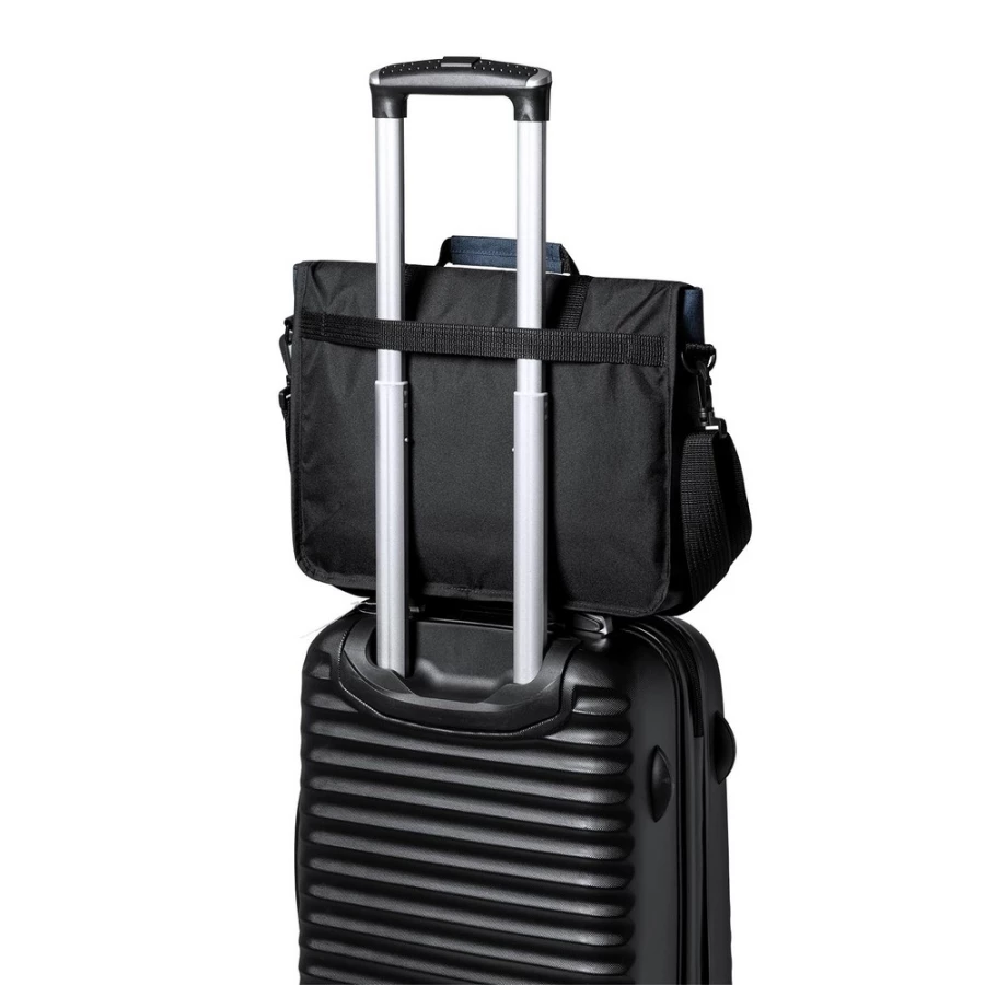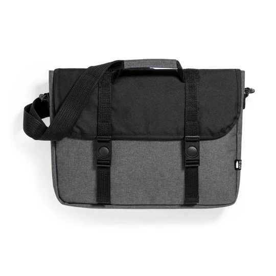 Torba na dokumenty wykonana z RPET z uchwytem, przednia kieszeń, miękka przegroda na laptopa, pasek do zamocowania na torbie podróżnej, regulowany pasek na ramię