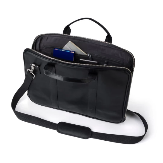 Torba na laptopa 15", wykonana ze skóry, przegroda na laptopa na rzep, przegroda główna na zamek błyskawiczny, przegroda główna z 4 kieszeniami wewnętrznymi, uchwyty i regulowany pasek na ramię