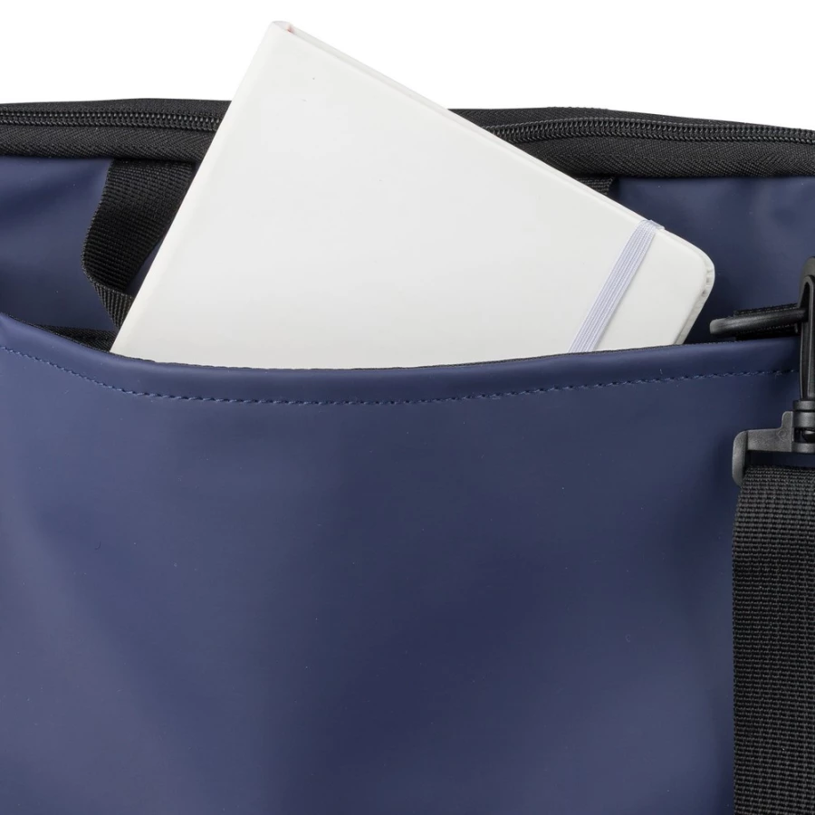 Torba na laptopa 15", podszewka z poliestru 210D, grubość wyściółki: 4 mm, tylna kieszeń zapinana na rzep, kieszeń główna zapinana na zamek, 2 krótkie uchwyty do noszenia, regulowany pasek na ramię ułatwiający noszenie, ikona recyklingu na metce, produkt wykonany z PU z recyklingu i poliestru