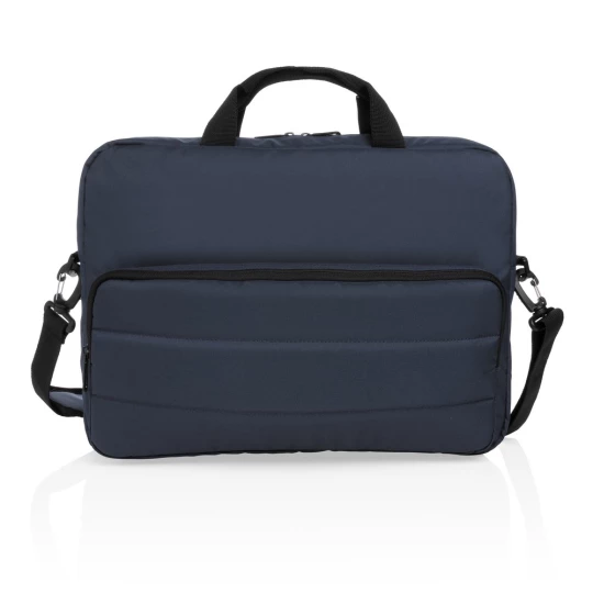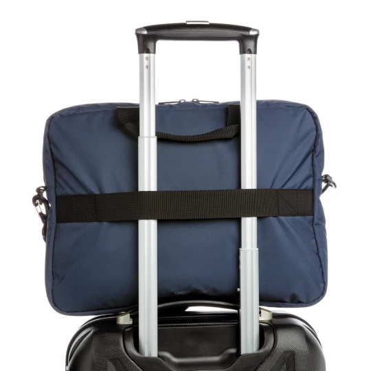 Torba na laptopa 15,6", klasyczny wygląd z dwoma szwami z przodu, posiada wiele kieszeni, dwa uchwyty oraz odpinany pasek na ramię, tkanina zewnętrzna i poszewka wewnętrzna wykonane z pochodzącego z recyklingu poliestru AWARE™ RPET, a 2% zysku ze sprzedaży każdego jest przekazywane do fundacji Water.org, nie zawiera PVC