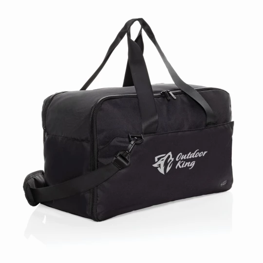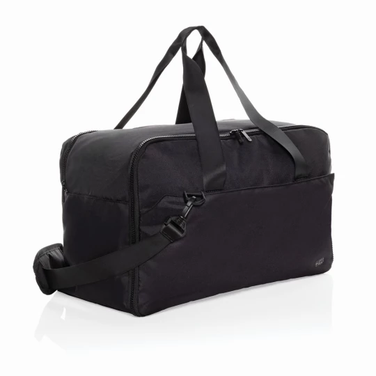 Torba na laptopa 15,6" Swiss Peak, wykonana z RPET AWARE™ 300D/150D, przegroda na laptopa do 15,6", przestronna komora główna z dodatkowymi kieszeniami wewnętrznymi, kieszeń na zamek, solidne zamki błyskawiczne, idealna na krótkie podróże służbowe