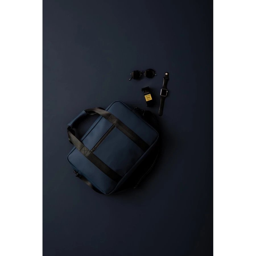 Torba na laptopa, wewnątrz kieszenie na drobiazgi, pasek do zamocowania na walizce, wykonana z wodoodpornego materiału, regulowany pasek na ramię