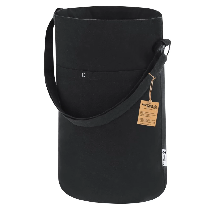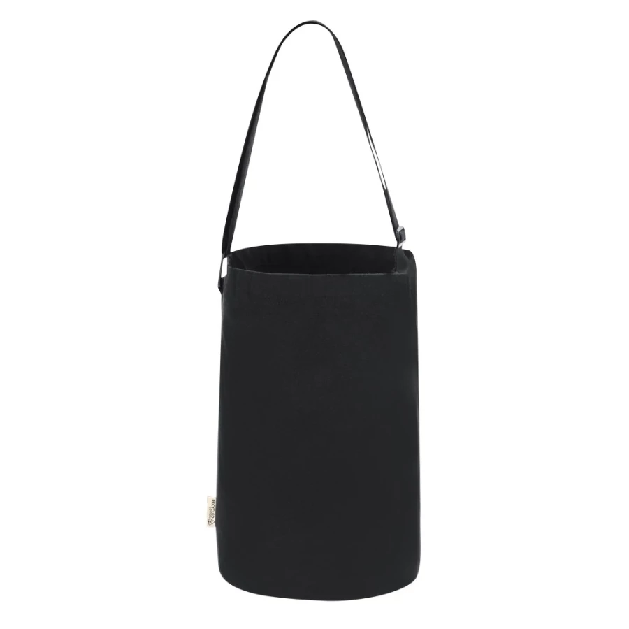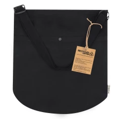 Torba na ramię z dużą pojemnością, posiada przegrodę główną, kieszeń wewnętrzną oraz zewnętrzną, regulowany pasek na ramię, ikona bawełny z recyklingu na metce, produkt wykonany z płótna z recyklingu
