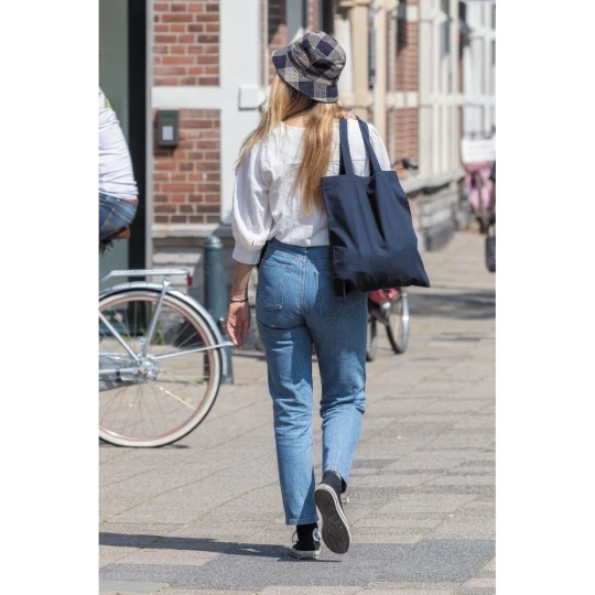 Torba na zakupy, wykonana z mieszanki 70% bawełny i 30% RPET o gramaturze 145 g/m2 pochodzących z recyklingu, dzięki zastosowaniu technologii AWARE™ wykorzystane materiały są identyfikowalne z pochodzenia, 2% wpływów z każdego sprzedanego produktu z kolekcji Impact jest przekazywane na rzecz Water.org