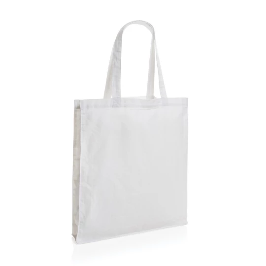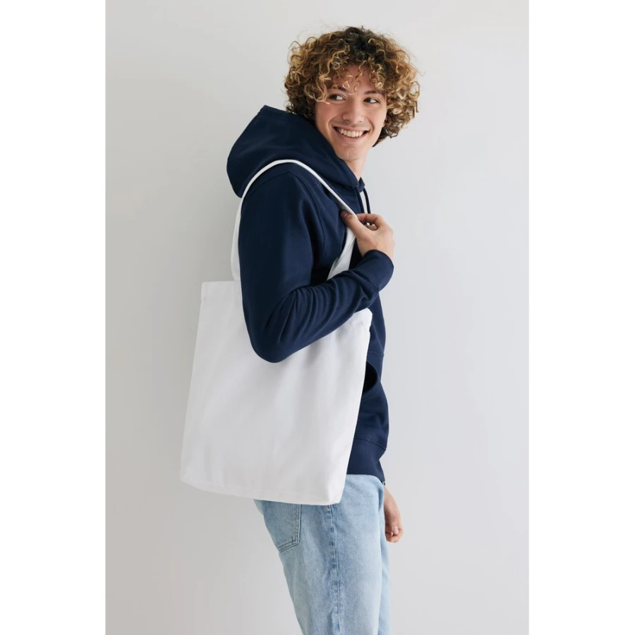 Torba na zakupy, posiada wstawkę na spodzie o szerokości 6 cm, która zapewnia dodatkowe miejsce, wykonana z mieszanki 70% bawełny i 30% RPET pochodzących z recyklingu, dzięki zastosowaniu technologii AWARE™ wykorzystane materiały są identyfikowalne z pochodzenia, 2% wpływów z każdego sprzedanego produktu z kolekcji Impact jest przekazywane na rzecz Water.org