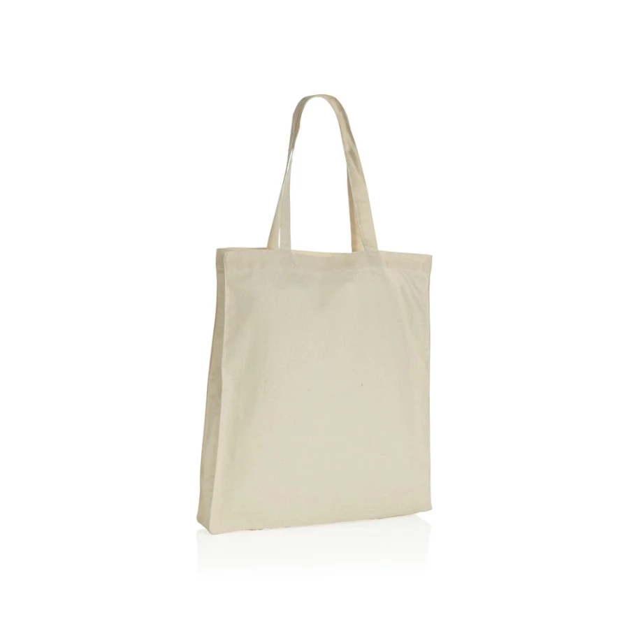 Torba na zakupy, posiada wstawkę na spodzie o szerokości 6 cm, która zapewnia dodatkowe miejsce, wykonana z mieszanki 70% bawełny i 30% RPET pochodzących z recyklingu, dzięki zastosowaniu technologii AWARE™ wykorzystane materiały są identyfikowalne z pochodzenia, 2% wpływów z każdego sprzedanego produktu z kolekcji Impact jest przekazywane na rzecz Water.org