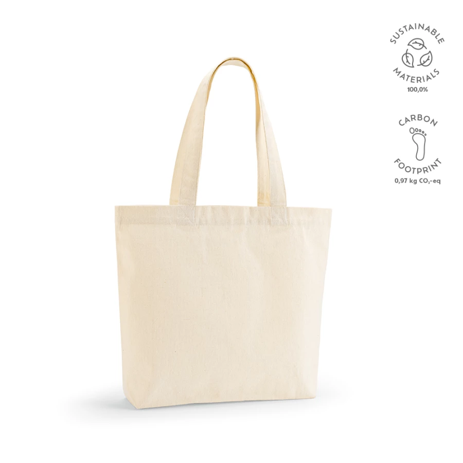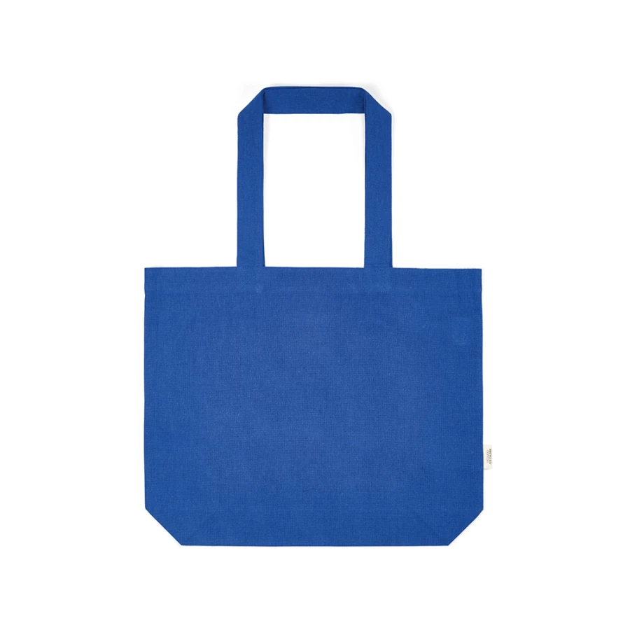 Nasza tętniąca życiem torba wyróżnia się w centrum działań na rzecz zrównoważonego rozwoju. Wykonana w 70% z bawełny z recyklingu i w 30% z poliestru z recyklingu, z wytrzymałego materiału o gramaturze 220 g/m² i przestronnymi wymiarami (19L) dzięki 10-centymetrowemu klinowi. Uchwyty o długości 65 cm gwarantują wygodę.