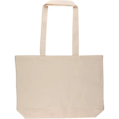 Torba na zakupy 140 g/m² o pojemności 16 litrów, posiada długie uchwyty umożliwiające noszenie na ramieniu (2,5 x 70 cm), ikona OEKO-TEX na metce, produkt wykonany z bawełny naturalnej