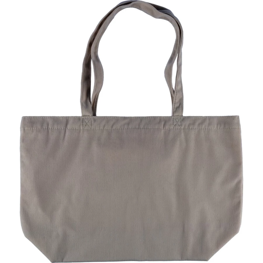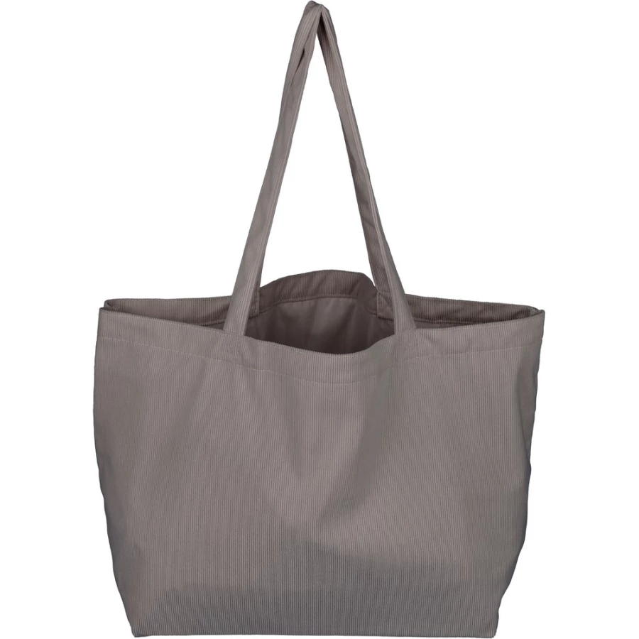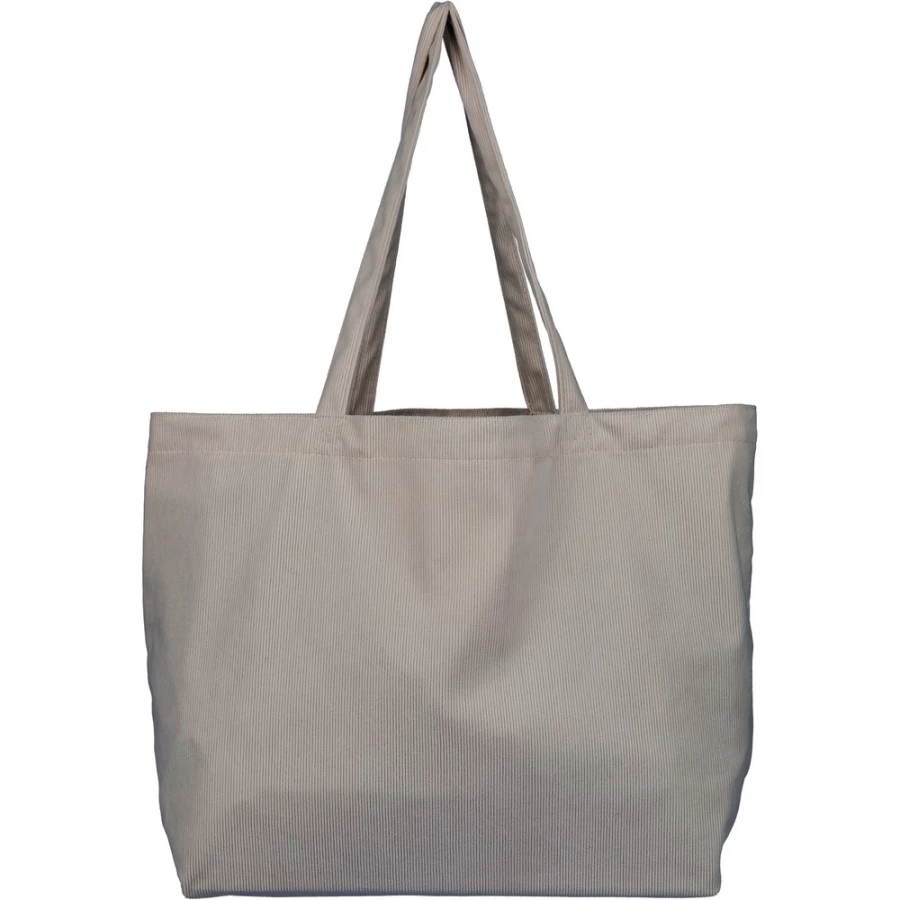 Torba na zakupy o pojemności ok. 25 litrów, posiada długie uchwyty umożliwiające noszenie na ramieniu (2,5 x 60 cm), podszewka z poliestru 210D, niewielka kieszeń wewnętrzna (10 x 10 cm), produkt wykonany ze sztruksu i poliestru