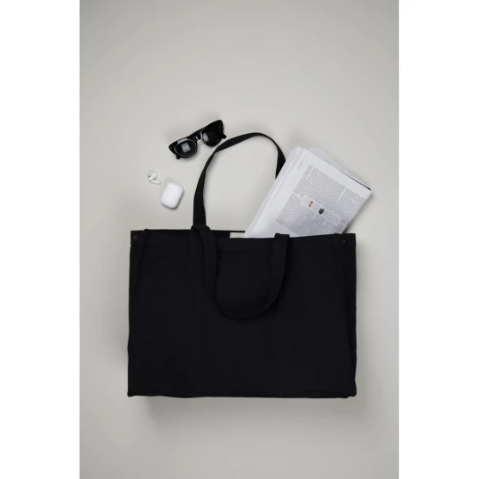 Torba na zakupy, kieszeń na zamek wewnątrz, wykonana w 70% z bawełny pochodzącej z recyklingu i w 30% z poliestru z recyklingu o gramaturze 400 g/m2, posiada wbudowany znacznik AWARE™, który potwierdza wykorzystanie materiałów z recyklingu