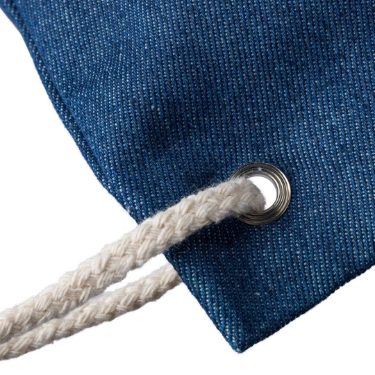 Torba na zakupy, worek ze sznurkiem, posiada długie uchwyty umożliwiające noszenie na ramieniu (2,5 x 50 cm), ikona recyklingu, produkt wykonany z dżinsu z recyklingu