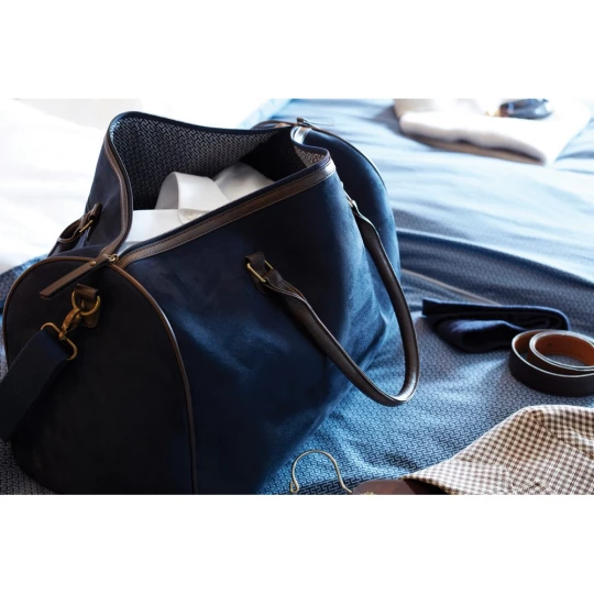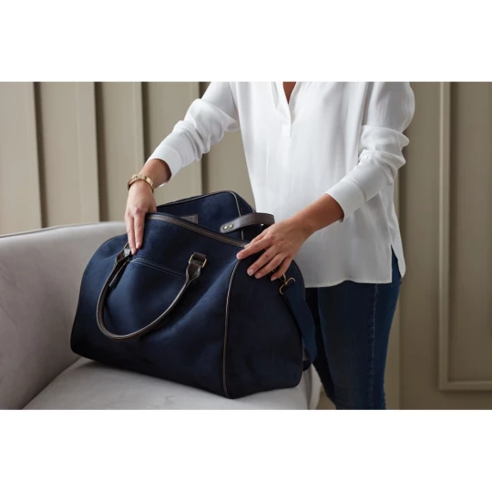 Plecak, torba podróżna, sportowa, wykonana z imitacji zamszu, detale ze skóry z PU oraz mosiądzu