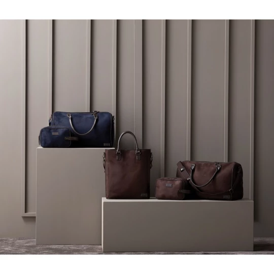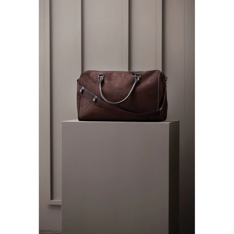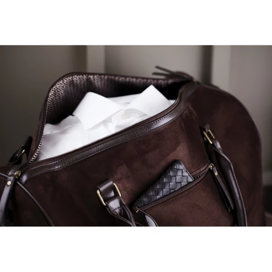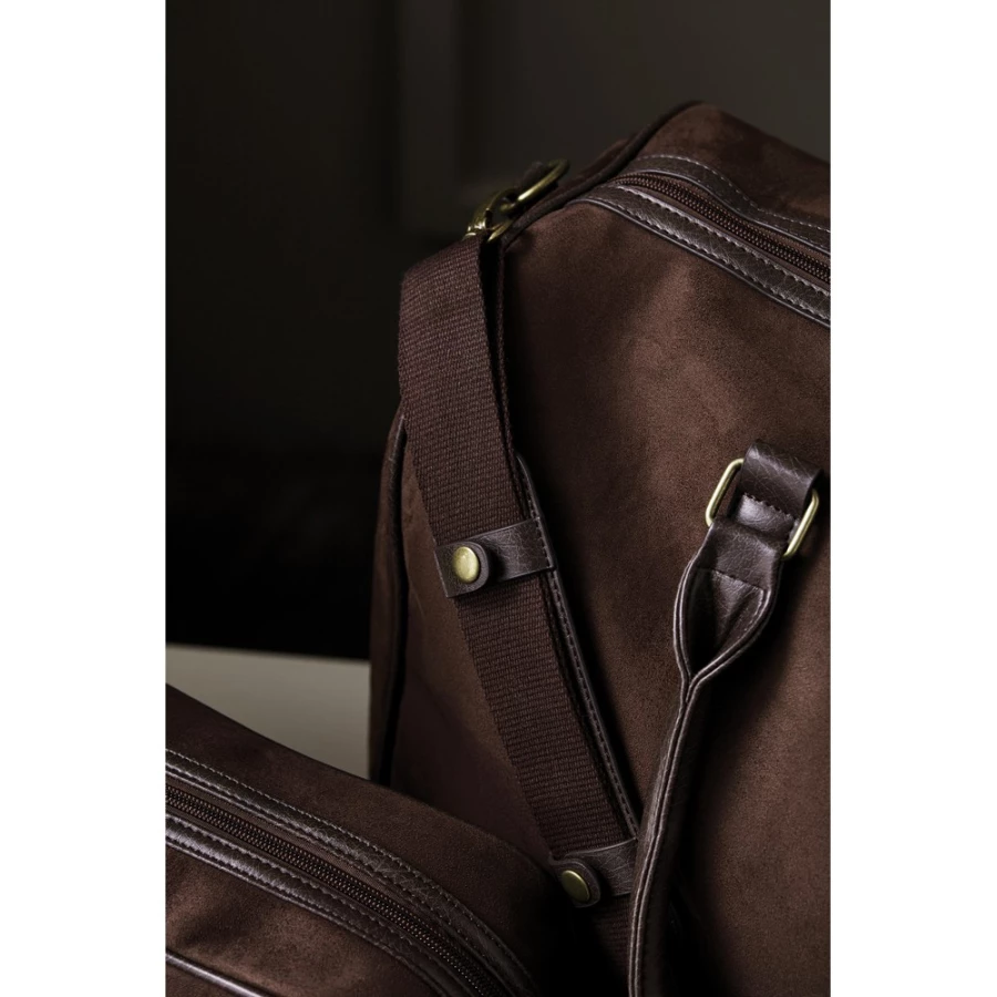 Plecak, torba podróżna, sportowa, wykonana z imitacji zamszu, detale ze skóry z PU oraz mosiądzu