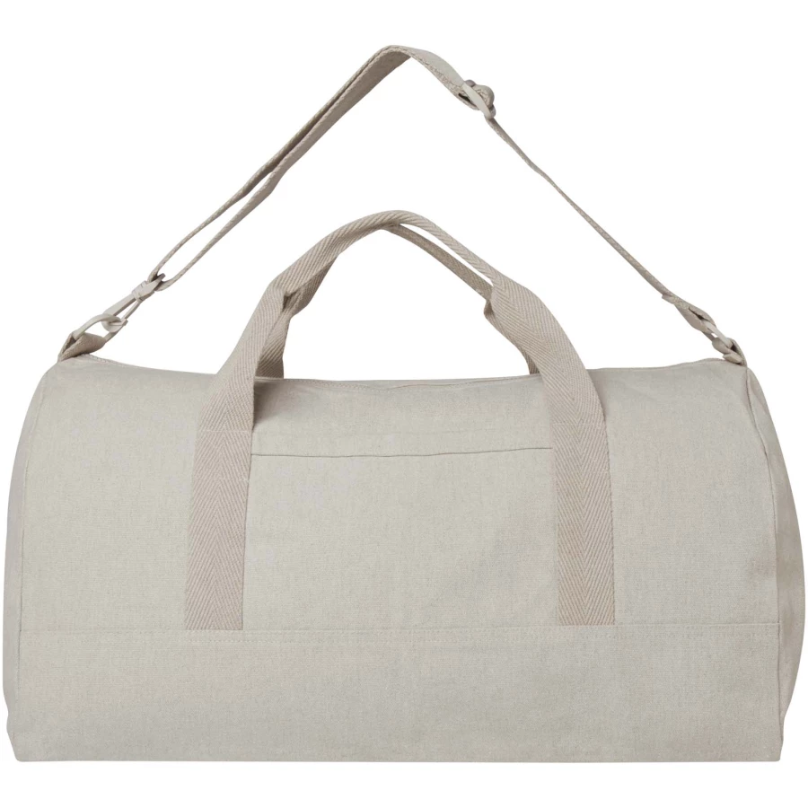 Torba podróżna Porter wykonana z bawełny pochodzącej z recyklingu o gramaturze 500 g/m² i poliestru pochodzącego z recyklingu, wyposażona jest w pojemną komorę główną umożliwiającą optymalne przechowywanie większych przedmiotów oraz małą przednią kieszeń do przechowywania małych przedmiotów, takich jak paszport lub telefon. Torbę można przenosić przy pomocy dwóch krótkich uchwytów lub odpinanego paska, który można regulować w celu zapewnienia maksymalnego komfortu. Torba podróżna z włókna Cyclo® pochodzącego z recyklingu, do pozyskania którego wykorzystano wstępnie posortowane odpady, wpływające na kolor przędzy. Włókna te nie tylko zmniejszają zapotrzebowanie na surowce pierwotne, ale także są przejawem zaangażowania w tworzenie obiegu zamkniętego, stanowiąc realny przykład zmniejszania ilości odpadów i promując gospodarkę w obiegu zamkniętym. Do każdej torby dołączony jest również znacznik Aware™. Ta innowacyjna funkcja pozwala użytkownikom prześledzić za pomocą kodu QR pochodzenie produktu i pokonaną przez niego drogę, zwiększając przejrzystość łańcucha dostaw i wspierając silniejszy związek między produktem a jego procesem produkcyjnym. Pojemność: 50 litrów.