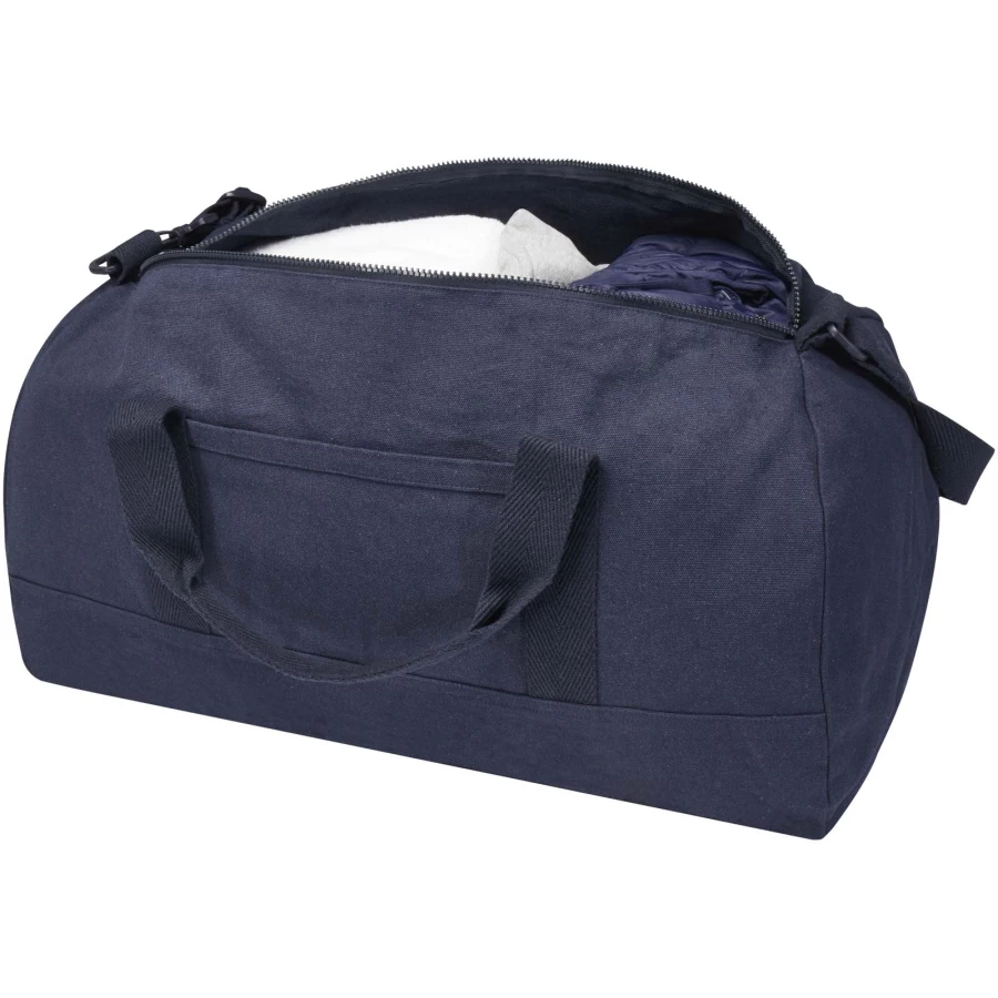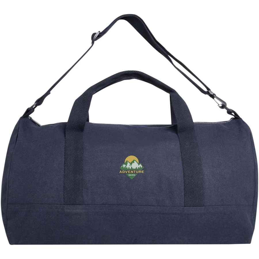 Torba podróżna Porter wykonana z bawełny pochodzącej z recyklingu o gramaturze 500 g/m² i poliestru pochodzącego z recyklingu, wyposażona jest w pojemną komorę główną umożliwiającą optymalne przechowywanie większych przedmiotów oraz małą przednią kieszeń do przechowywania małych przedmiotów, takich jak paszport lub telefon. Torbę można przenosić przy pomocy dwóch krótkich uchwytów lub odpinanego paska, który można regulować w celu zapewnienia maksymalnego komfortu. Torba podróżna z włókna Cyclo® pochodzącego z recyklingu, do pozyskania którego wykorzystano wstępnie posortowane odpady, wpływające na kolor przędzy. Włókna te nie tylko zmniejszają zapotrzebowanie na surowce pierwotne, ale także są przejawem zaangażowania w tworzenie obiegu zamkniętego, stanowiąc realny przykład zmniejszania ilości odpadów i promując gospodarkę w obiegu zamkniętym. Do każdej torby dołączony jest również znacznik Aware™. Ta innowacyjna funkcja pozwala użytkownikom prześledzić za pomocą kodu QR pochodzenie produktu i pokonaną przez niego drogę, zwiększając przejrzystość łańcucha dostaw i wspierając silniejszy związek między produktem a jego procesem produkcyjnym. Pojemność: 50 litrów.