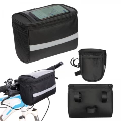 Torba na rower, do mocowania na kierownicy. Posiada dużą komorę główną, przegródkę na telefon dotykowy, umożliwiającą korzystanie z niego oraz odblaskowy pasek dzięki któremu będziesz lepiej widoczny na drodze.