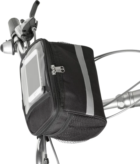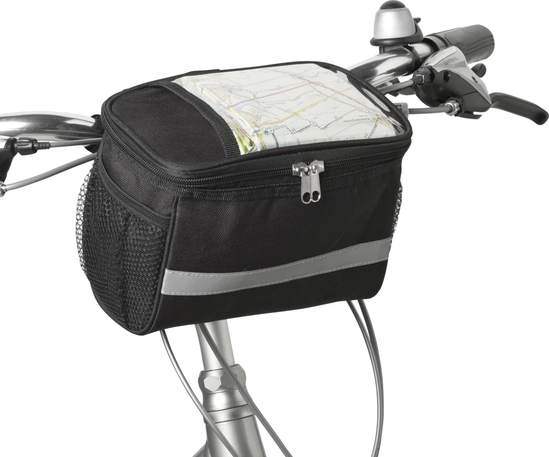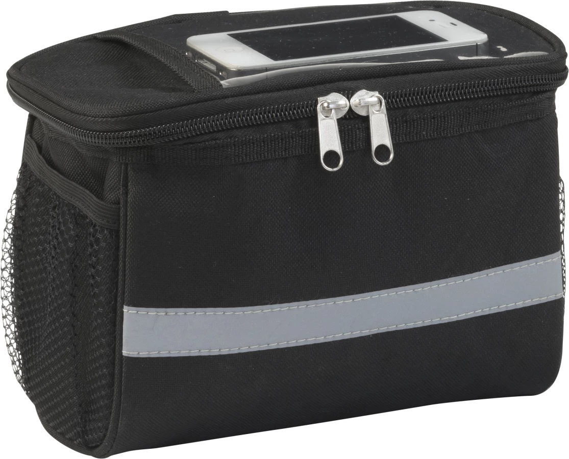 Rowerowa torba termoizolacyjna na zamek, na górze kieszeń PVC, połyskliwy pasek, siateczkowe kieszenie po bokach