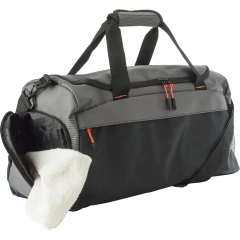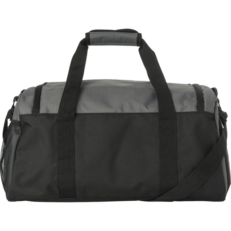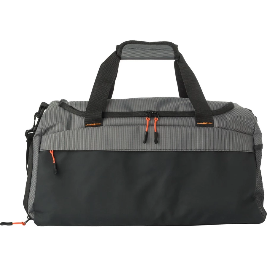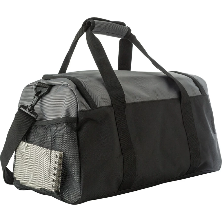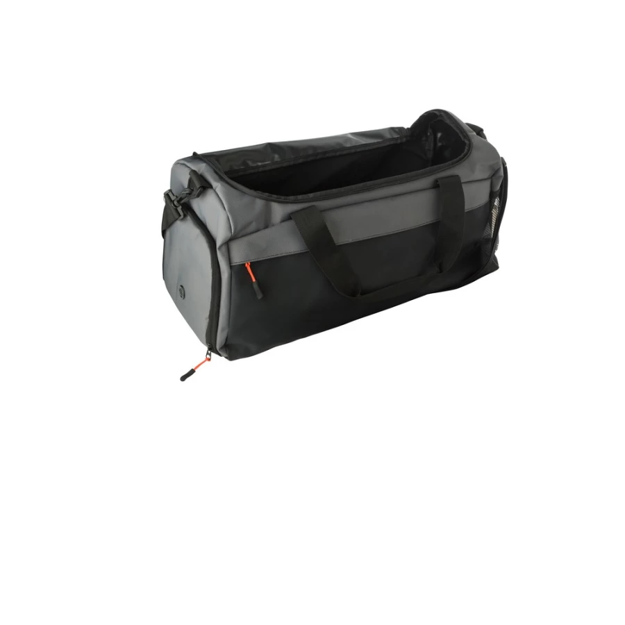 Torba sportowa, podróżna z kieszenią z przodu zapinaną na zamek, boczna kieszeń na buty zapewniająca dopływ powietrza, boczna kieszeń z siatki, krótkie ramiona z zapięciem na rzepy, przestronna przegroda wzmocniona na dole