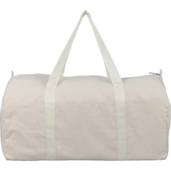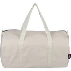 Torba sportowa, podróżna, 330 g/m² o pojemności ok. 30 litrów, podszewka z poliestru 210 D, duża kieszeń zapinana na zamek z wierzchu, posiada długie uchwyty umożliwiające noszenie na ramieniu (100 x 3 cm), ikona RPET na metce, produkt wykonany z polibawełny z recyklingu, poliestru i RPET