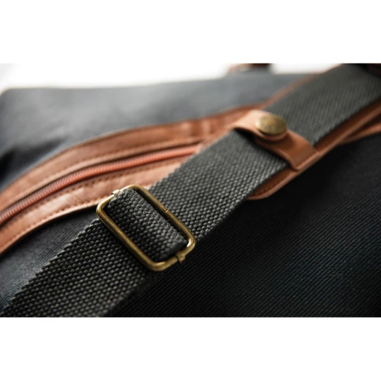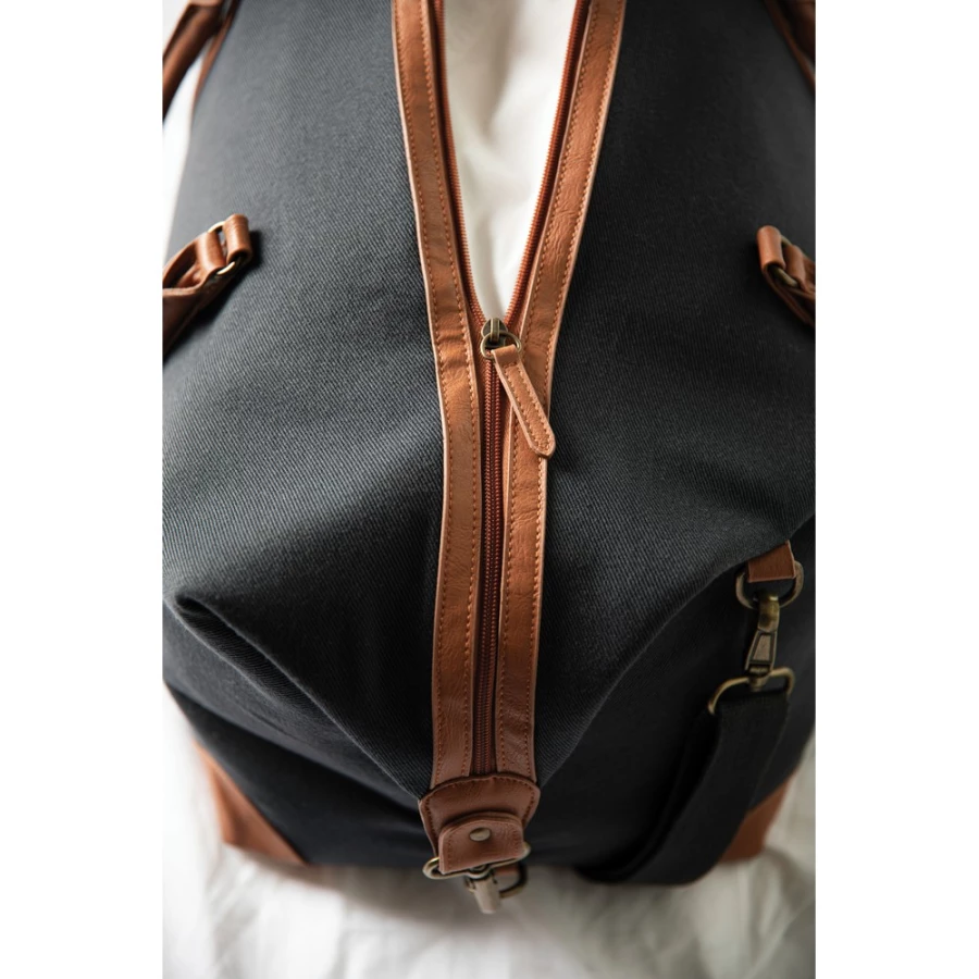 Torba sportowa, podróżna, wykonana z RPET, detale z PU, przestronna przegroda główna z kieszeniami wewnątrz, regulowany pasek na ramię