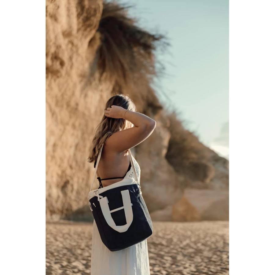 Torba termoizolacyjna, regulowany pasek na ramię, uchwyty, wykonana z materiału pochodzącego z recyklingu o gramaturze 500 gsm (70% bawełny z recyklingu, 30% poliestru z recyklingu), posiada znacznik AWARE™, który gwarantuje, że wykorzystane materiały pochodzą z recyklingu, 2% wpływów z każdego sprzedanego produktu z kolekcji Impact jest przekazywane na rzecz Water.org