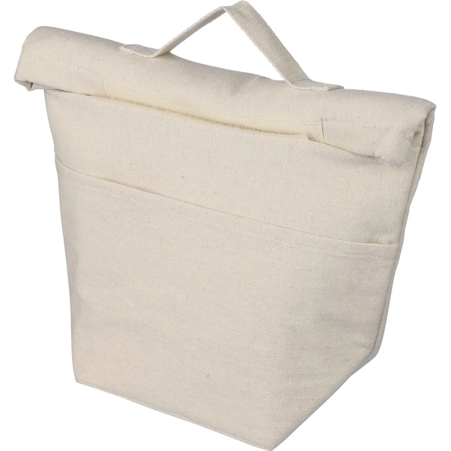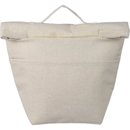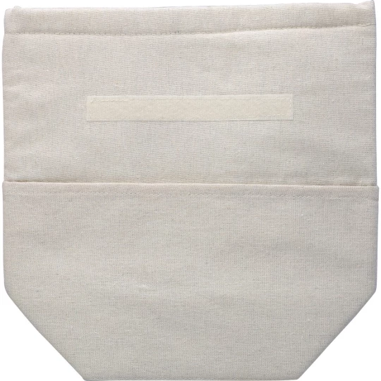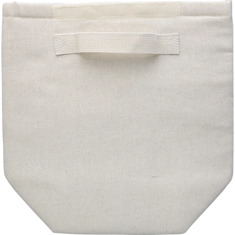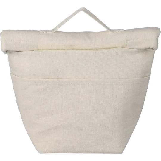 Torba termoizolacyjna, mała kieszeń z przodu, zapinana na rzep, ikona bawełny z recyklingu na produkcie, krótki uchwyt do noszenia w dłoni, produkt wykonany z bawełny pochodzącej z recyklingu, PEVA, EPE