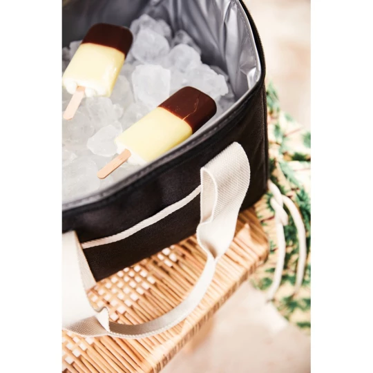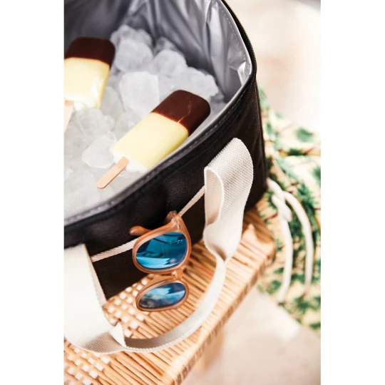 Torba termoizolacyjna, uchwyty, zamknięcie na zamek, wykonana w 50% z RPET, podszewka z PEVA, regulowany pasek na ramię