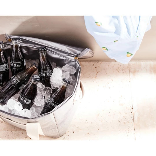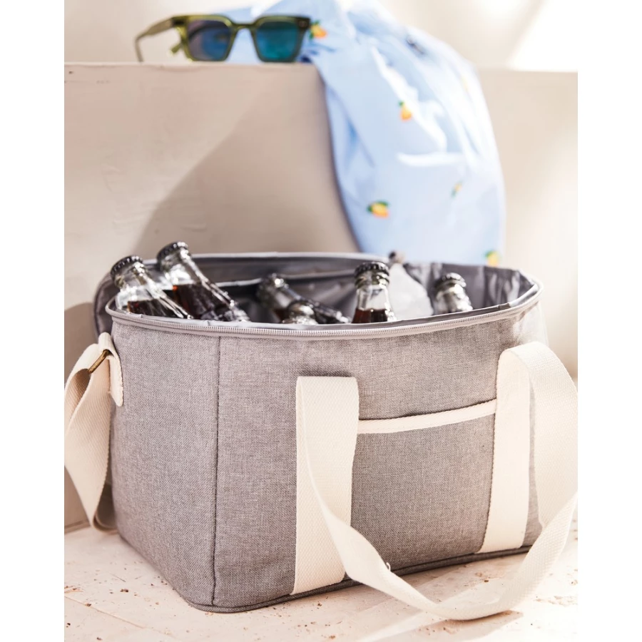 Torba termoizolacyjna, uchwyty, zamknięcie na zamek, wykonana w 50% z RPET, podszewka z PEVA, regulowany pasek na ramię