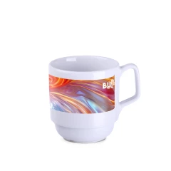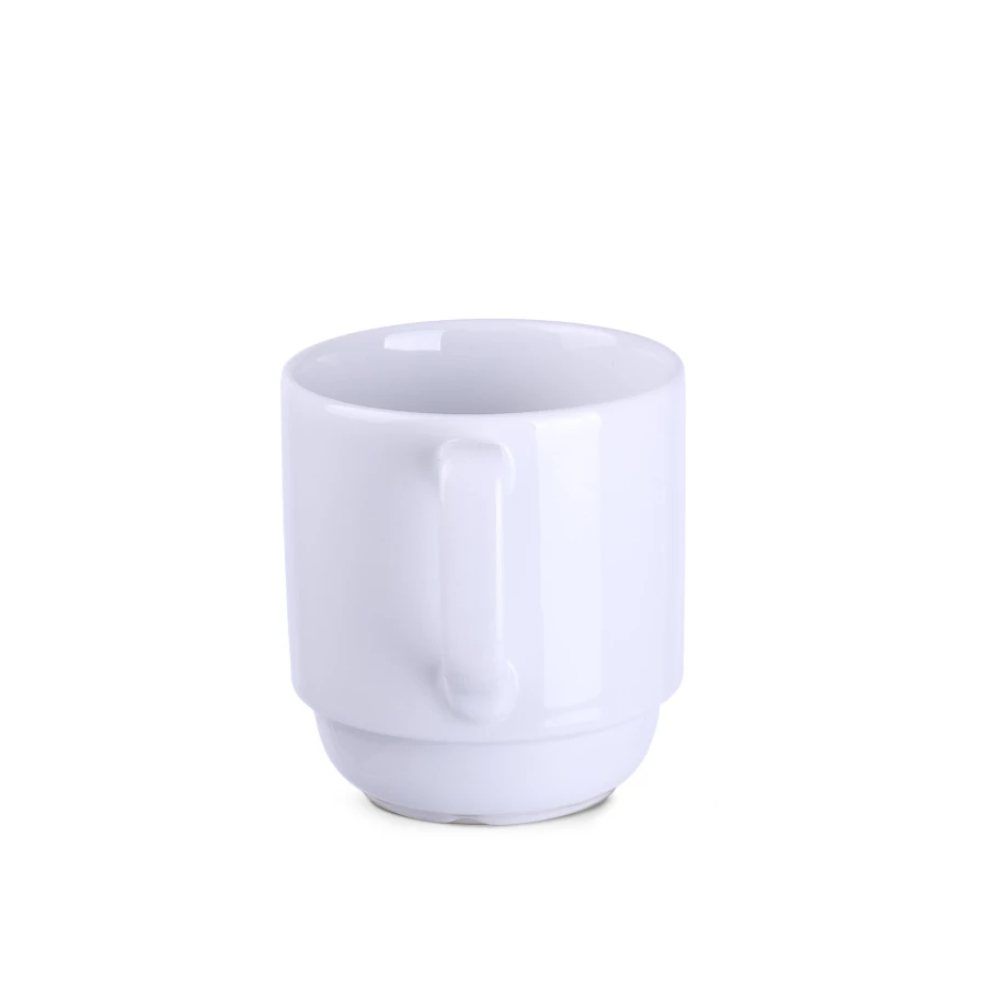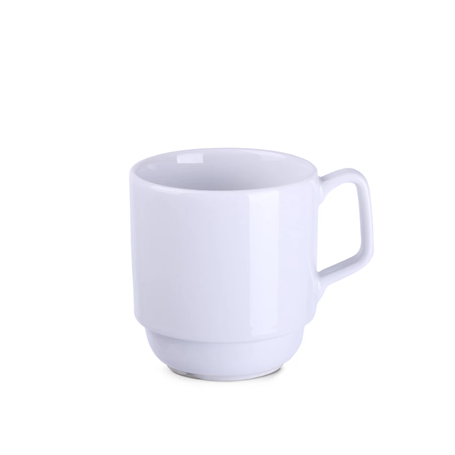 Porcelanowy kubek o oryginalnym designie. Jego kształt pozwala na sztaplowanie. Posiada specjalne kanaliki na spodzie, umożliwiające odprowadzanie wody pozostałej po myciu w zmywarce. Produkowany w Europie.