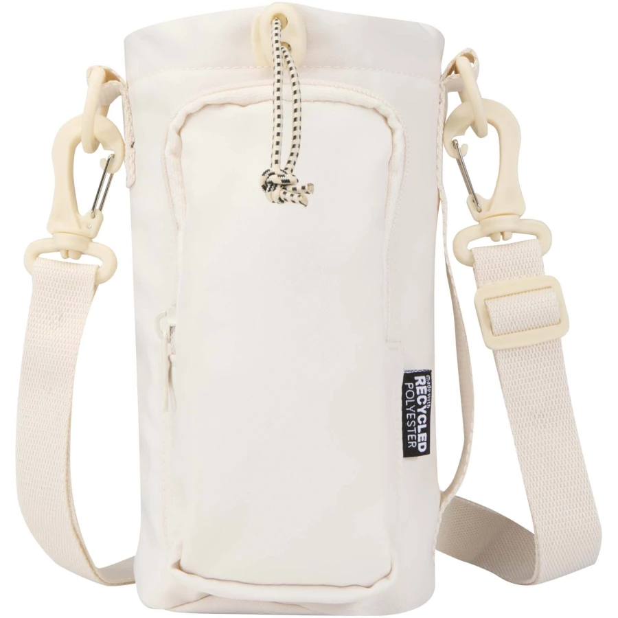 Torba podróżna na butelkę Trip Aware™ wykonana z materiału pochodzącego z recyklingu to praktyczne i lekkie rozwiązanie pozwalające zachować nawodnienie organizmu w podróży. Wykonana z poliestru 290D o splocie skośnym z dzianinowym spodem i podszewką RPET 210D/PU, łączy w sobie trwałość i przemyślany design. Główna komora zamykana jest na ściągacz i mieści zarówno duże butelki z uchwytami, jak i mniejsze butelki. Łatwy dostęp umożliwia tylny otwór. Przednia kieszeń pomieści najpotrzebniejsze rzeczy, np. telefon, a wewnątrz znajduje się kieszeń wsuwana i wstążka do przymocowania kluczy. Regulowany pasek i boczny uchwyt oferują różne możliwości noszenia. Do każdej torby dołączona jest również zawieszka Aware™ pozwalająca użytkownikom prześledzić za pomocą kodu QR pochodzenie i ścieżkę produkcji, zwiększając przejrzystość łańcucha dostaw i wspierając silniejszy związek między produktem a jego procesem produkcyjnym. Pojemność: 2 litry.