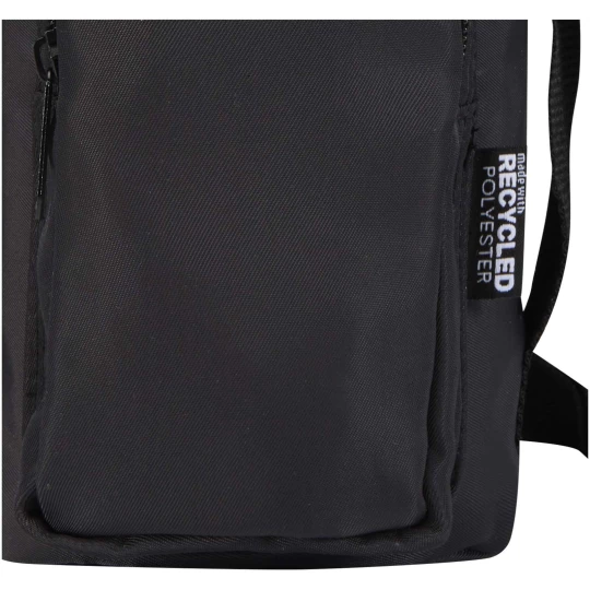 Torba podróżna na butelkę Trip Aware™ wykonana z materiału pochodzącego z recyklingu to praktyczne i lekkie rozwiązanie pozwalające zachować nawodnienie organizmu w podróży. Wykonana z poliestru 290D o splocie skośnym z dzianinowym spodem i podszewką RPET 210D/PU, łączy w sobie trwałość i przemyślany design. Główna komora zamykana jest na ściągacz i mieści zarówno duże butelki z uchwytami, jak i mniejsze butelki. Łatwy dostęp umożliwia tylny otwór. Przednia kieszeń pomieści najpotrzebniejsze rzeczy, np. telefon, a wewnątrz znajduje się kieszeń wsuwana i wstążka do przymocowania kluczy. Regulowany pasek i boczny uchwyt oferują różne możliwości noszenia. Do każdej torby dołączona jest również zawieszka Aware™ pozwalająca użytkownikom prześledzić za pomocą kodu QR pochodzenie i ścieżkę produkcji, zwiększając przejrzystość łańcucha dostaw i wspierając silniejszy związek między produktem a jego procesem produkcyjnym. Pojemność: 2 litry.