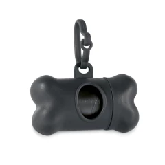 Dozownik na torebki higieniczne dla psów, w kształcie kości, wykonany z materiału z PP. Zawiera 20 higienicznych worków dla psa wykonanych z PE. 111 x 21 x 15 mm