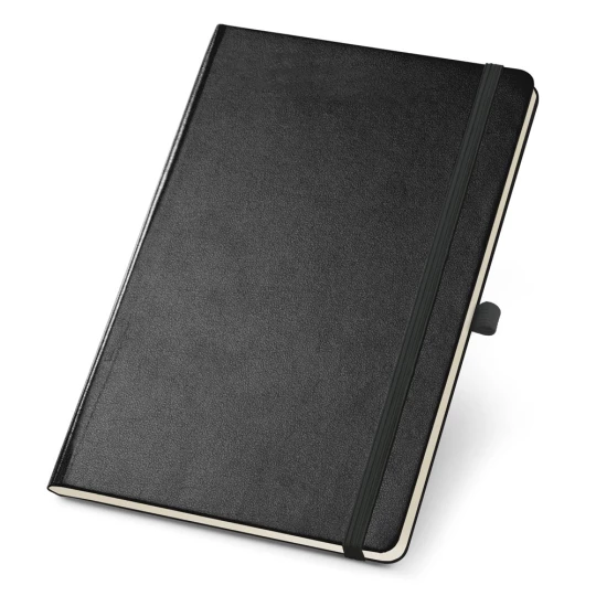Notatnik A5 ze 160 stronami w linie z papieru z 100% recyklingu kolorze kości słoniowej (70 g/m²). Zawiera twardą okładkę, wewnętrzną kieszeń, pasek oddzielający, uchwyt na długopis (nie w zestawie) i elastyczną opaskę.Kolor 121: bez uchwytu na długopis 137 x 210 mm