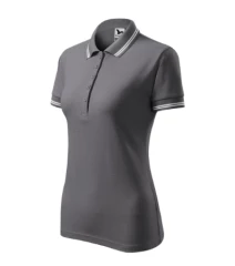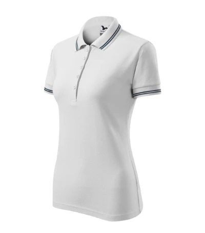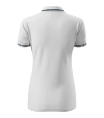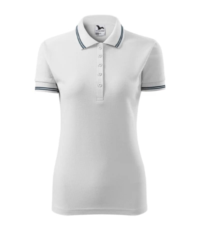 dopasowany krój z bocznymi szwami, kołnierzyk i mankiety z dzianiny ściągaczowej 1:1 z kontrastowym paskiem, wąskie plisy z 5 guzikami w kolorze materiału, wewnętrzna część lamówki wykończona taśmą z tego samego materiału co koszulka, szew na ramionach wzmocniony taśmą