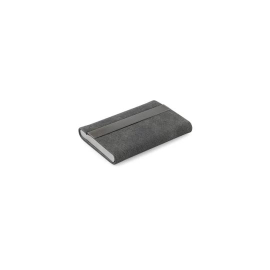Zestaw składający się z etui na karty i etui na klucze, oba wykonane z metalu i poliestru (30% z recyklingu). Etui na karty może pomieścić do 7 kart. Dostarczane w eleganckim pudełku z papieru pakowego. Pierścień: ø 32 mm | Produkt: 87 x 25 x 7 mm | Razem: 114 x 32 x 7 mm | Uchwyt na kartę: 95 x 65 x 13 mm | Etui: 125 x 135 x 17 mm