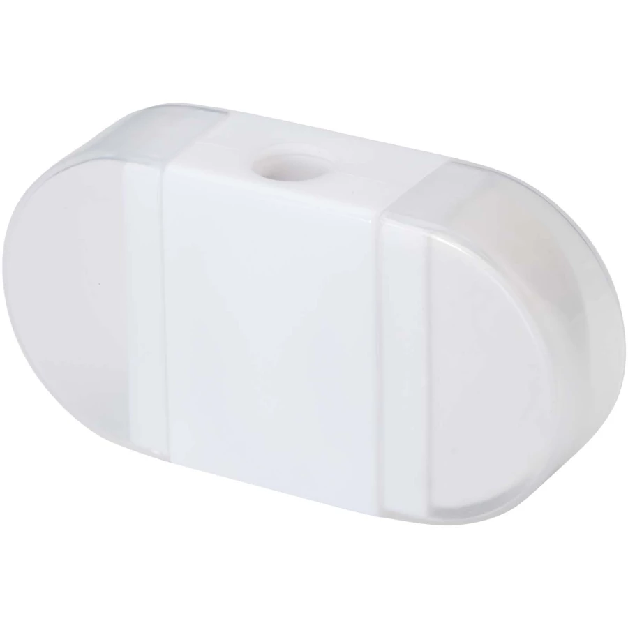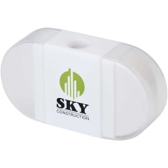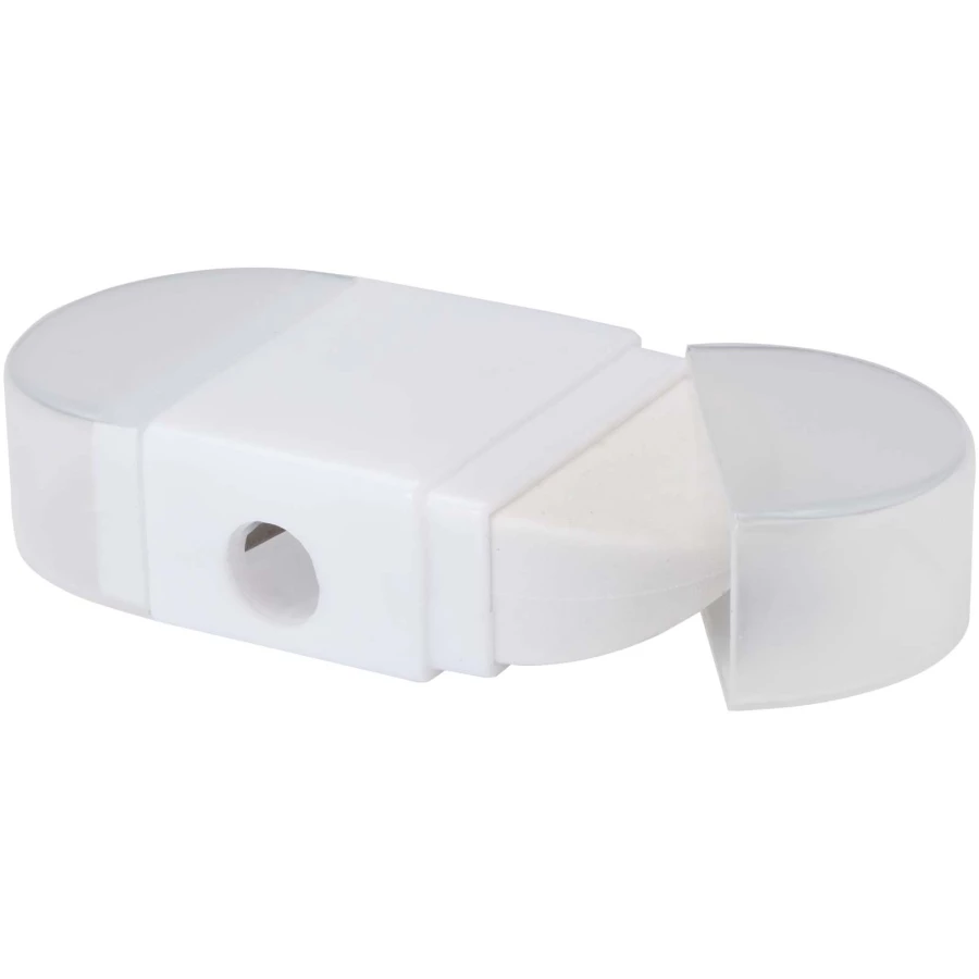 Temperówka z gumką i przezroczystymi zatyczkami po obu stronach. Wymiary: 6,2 x 3,3 x 1,6 cm.