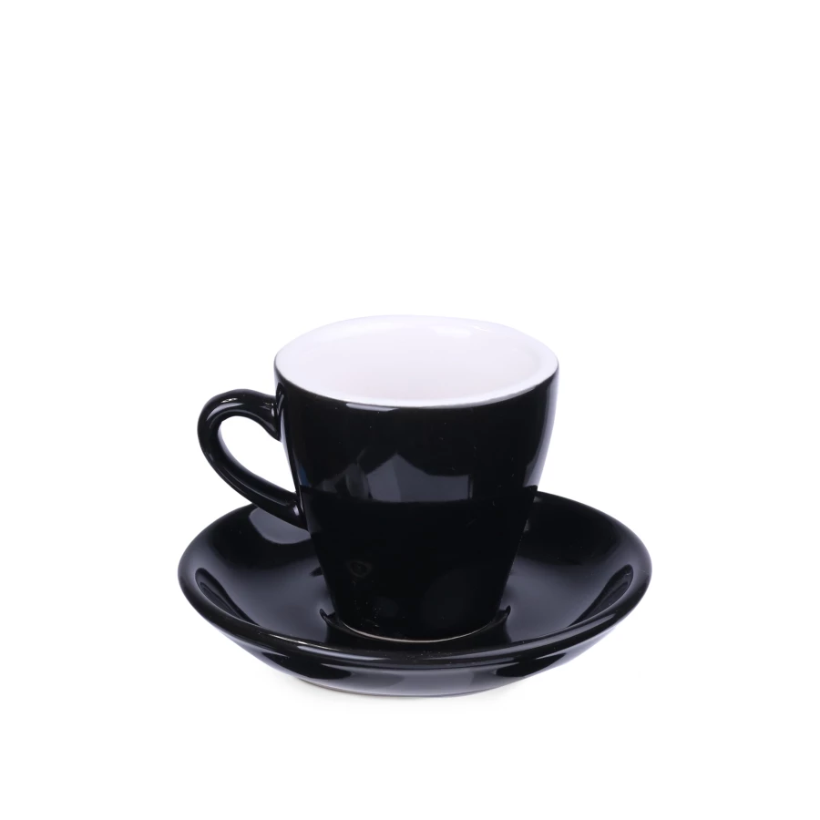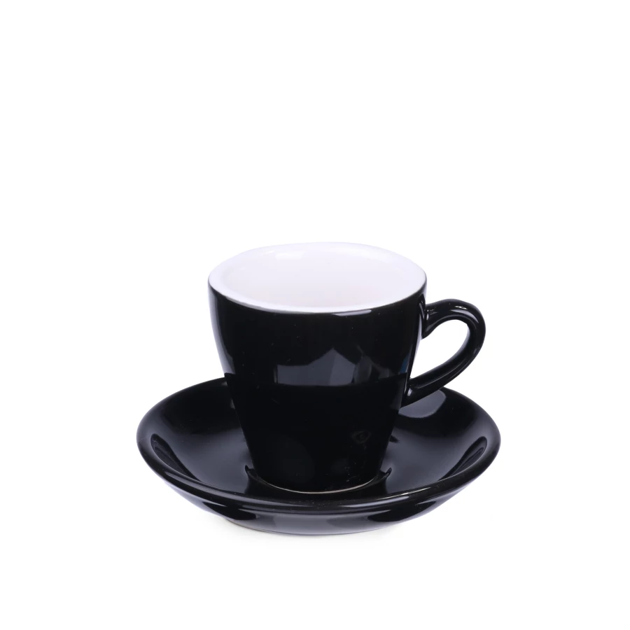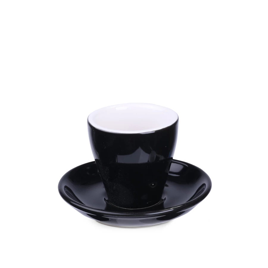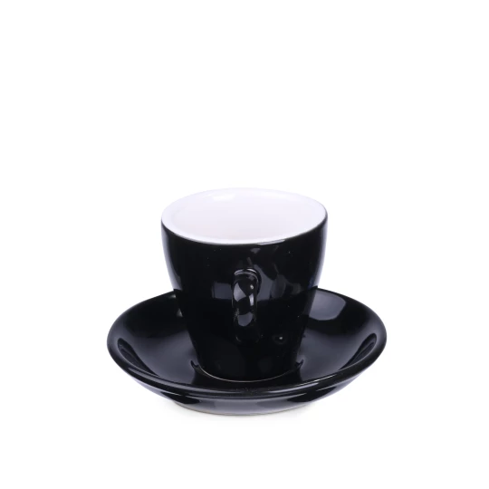 Modny i charakterystyczny zestaw do espresso. Grubościenna filiżanka z białym wnętrzem, wyróżni markę i wyniesie ją na szczyt. Wnętrze możesz dodatkowo zabarwić na wybrany kolor.