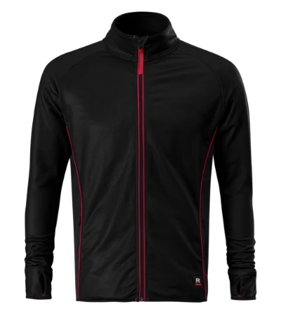 gładki, elastyczny, szybkoschnący materiał, prosty krój ze szwami bocznymi, zamek błyskawiczny z odwróconym suwakiem na całej długości z ochroną podbródka, wewnętrzna tylna część lamówki wzmocniona taśmą, raglanowe rękawy, mankiety z otworem na kciuk, kieszenie zapinane na suwak, regulacja kołnierza elastycznym paskiem, elementy kontrastowe, pętla do zawieszania