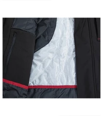 3-warstwowy ocieplany softshell z membraną, powierzchnia termorefleksyjna na plecach, zamek błyskawiczny na całej długości z osłoną podbródka i patką, odpinany, regulowany kaptur z podszewką, regulacja otworu kaptura i jego dolnej części za pomocą elastycznego sznurka, regulowane rękawy na rzepy, kieszenie z wodoodpornym zamkiem błyskawicznym, Przyszywane kieszenie na piersi zapinane na zamek, wewnętrzna kieszonka na suwak, dostęp do brandingu z boku, lekko przedłużona w tylnej części, elementy kontrastowe, wewnętrzny polar z wykończeniem antypillingowym