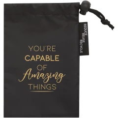 Pasek do jogi wykonany z poliestru z recyklingu (RPET). Wykorzystanie RPET w produkcji pasków do jogi pomaga zmniejszyć ilość odpadów i przyczynia się do ochrony środowiska. Wykorzystanie tworzyw sztucznych pochodzących z recyklingu ogranicza tworzenie nowych tworzyw sztucznych, dzięki czemu pasek jest bardziej przyjaznym dla środowiska wyborem. Wymiary: 181 x 3,8 cm. Pokrowiec jest również wykonany z RPET.