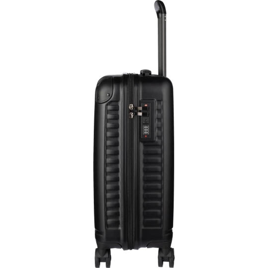 Walizka, torba na kółkach, kieszenie wewnętrzne zapinane na zamek, sprawdzi się podczas podróży samolotem, pociągiem lub samochodem, 8 kółek, wygodny trzypoziomowy system regulacji uchwytu, posiada zamek numeryczny chroniący przed kradzieżą, produkt wykonany z ABS