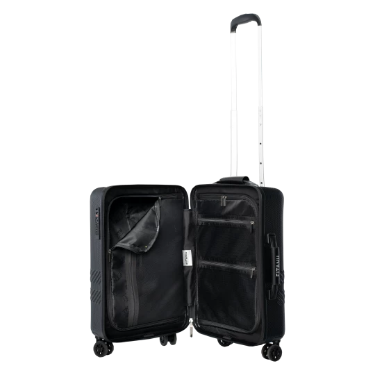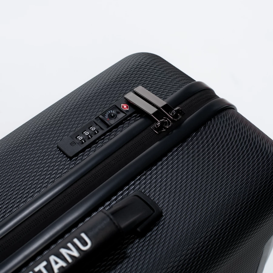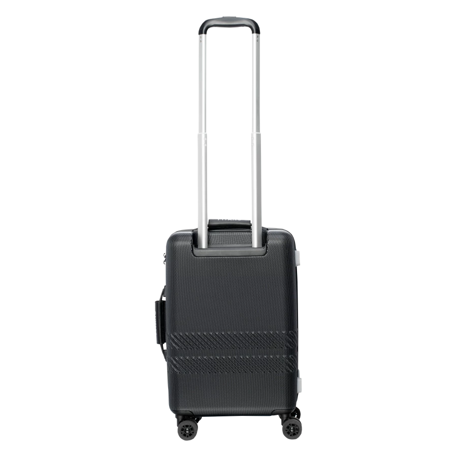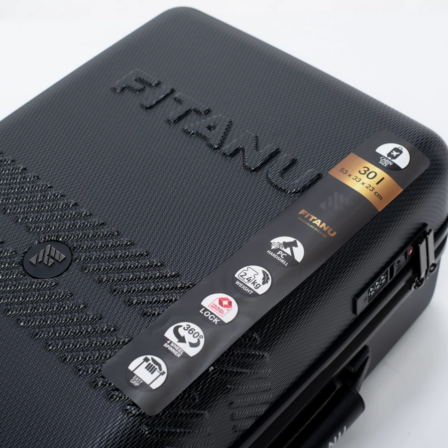 WALIZKA POJEMNOŚĆ: WYMIARY: 54 x 35.4 x 23.5 cm WAGA: SKŁAD MATERIAŁOWY: 70% NOWY PC + 30% PC Z RECYKLINGU SPECYFIKACJA: – TWARDA SKORUPA Z PC – ZAMEK SZYFROWY – BAGAŻ REJESTROWANY – KÓŁKA: ZAKRES OBROTU 360° – WYGODNY UCHWYT