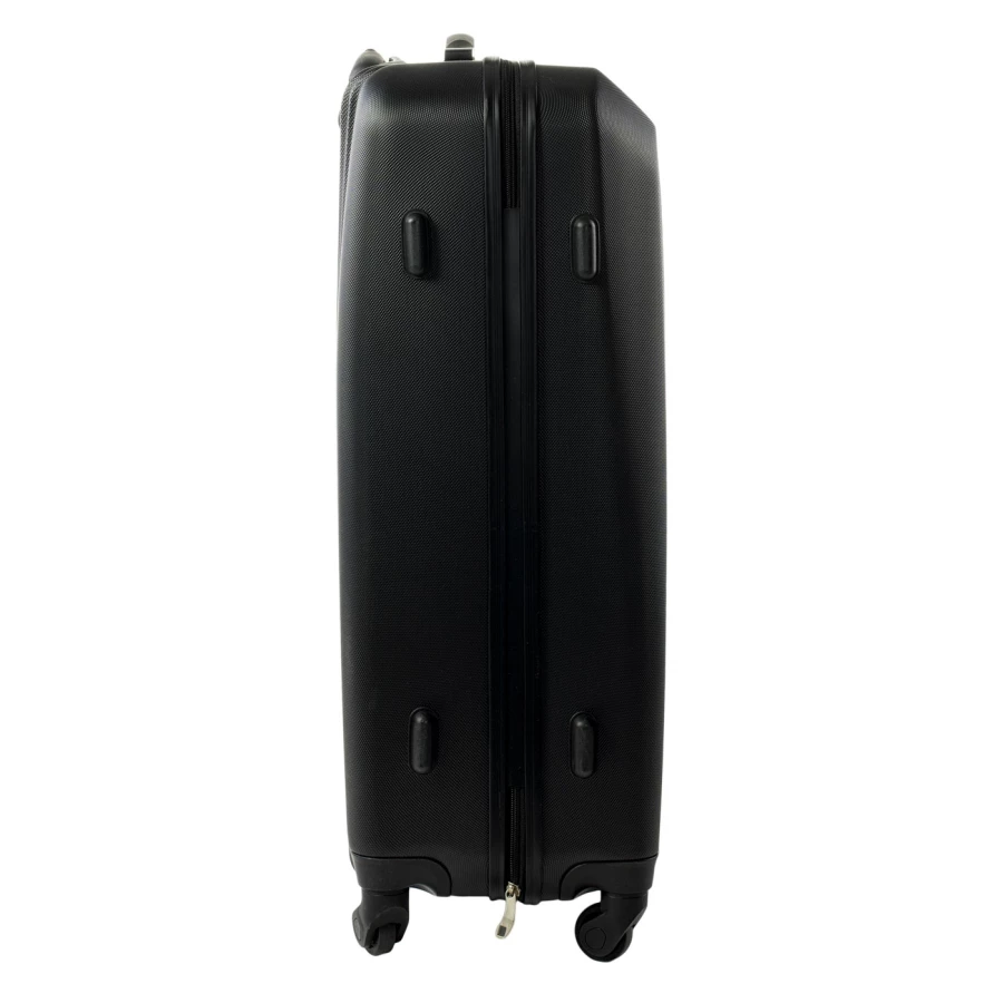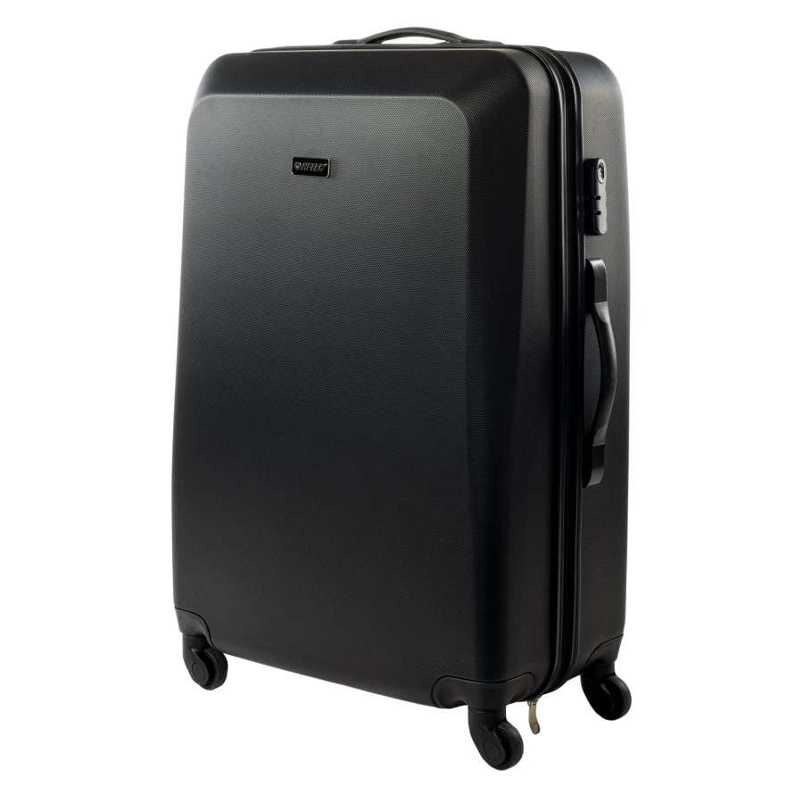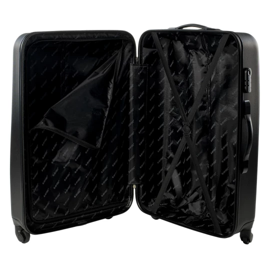 pojemność: 109L wymiary: 75 x 48 x 27 cm waga: 4,6 kg materiał: 80% ABS, 8% poliester, 8% metal, 2% PVC, 1% nylon, 1% PP twarda obudowa stabilny stelaż zamykanie szyfrowane kodem 4 kółka obracające się o 360∘ wygodne prowadzenie