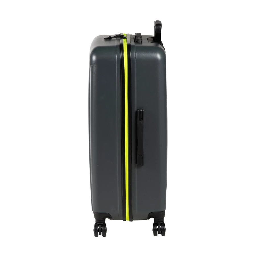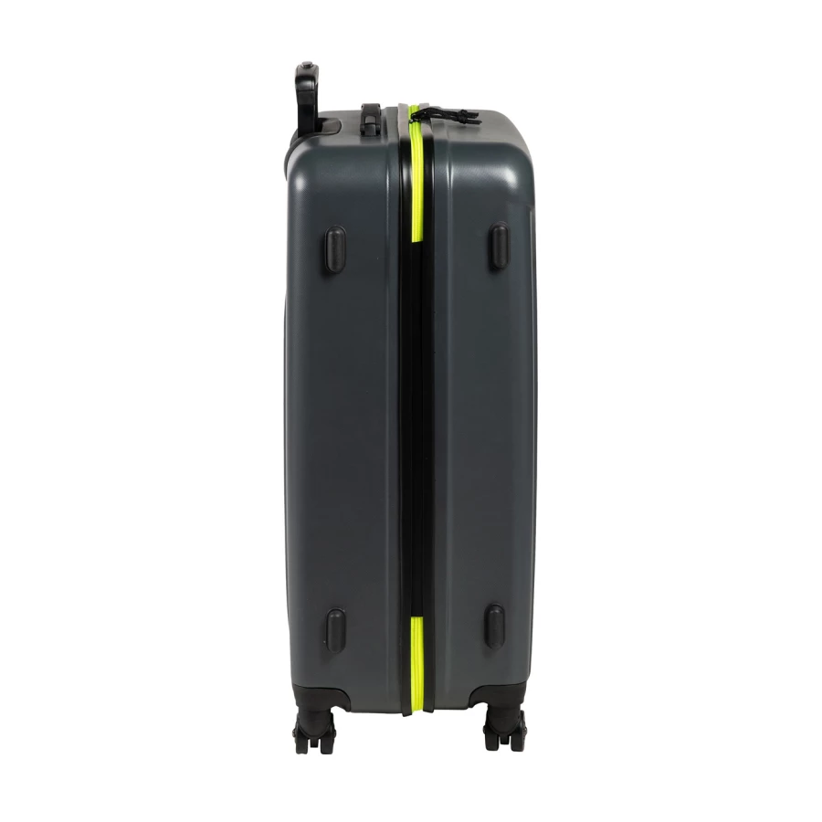 Skład: 100% Poliester Pojemność: 100 L Wymiary: 75 x 50 x 30 cm Twarda skorupa Podwójne kółka z 360° zakresem obrotu Teleskopowa rączka Wewnętrzne przegrody oraz paski ułatwiają układanie oraz zabezpieczenie przechowywanych rzeczy Siateczkowa kieszeń wewnętrzna