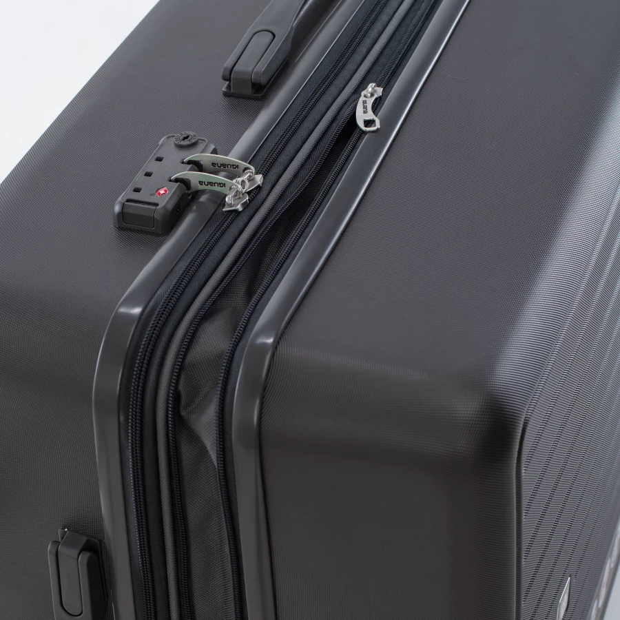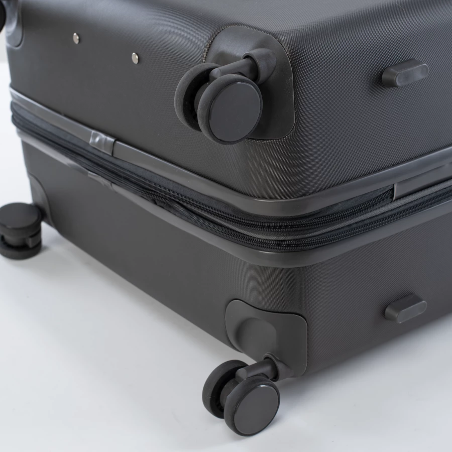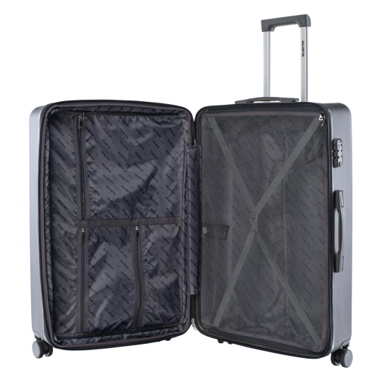 WALIZKA TWARDA POJEMNOŚĆ: 95 l WYMIARY: 76 x 50 x 31,5 cm WAGA: 4,9 kg SKŁAD MATERIAŁOWY: 100% ABS SPECYFIKACJA: TWARDA SKORUPA ZAMEK SZYFROWANY KODEM KÓŁKA: ZAKRES OBROTU 360° WYGODNY UCHWYT ZAMEK POSZERZAJĄCY