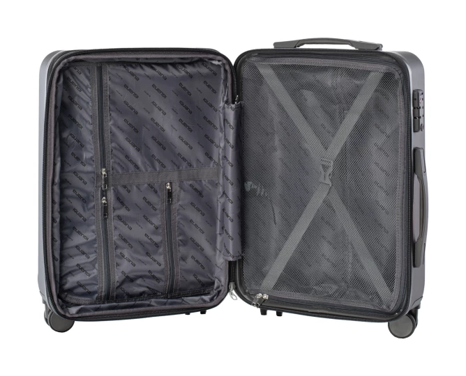 WALIZKA TWARDA POJEMNOŚĆ: 40 l WYMIARY: 55,5 x 36 x 24 cm WAGA: 2,8 kg SKŁAD MATERIAŁOWY: 100% ABS SPECYFIKACJA: TWARDA SKORUPA ZAMEK SZYFROWANY KODEM BAGAŻ PODRĘCZNY KÓŁKA: ZAKRES OBROTU 360° WYGODNY UCHWYT ZAMEK POSZERZAJĄCY
